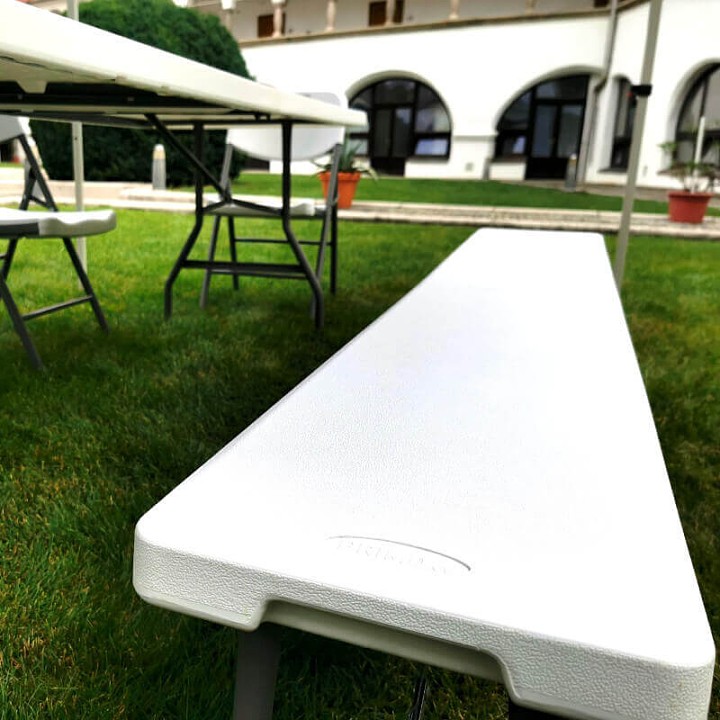 Los bancos plegables ocupan poco espacio, son ligeros y permiten apilarse unos sobre otros. Con requisitos espaciales mínimos para almacenamiento o transporte, ayudarán a organizar mejor bodas, fiestas en jardines o reuniones. Los bancos de plástico plegables están hechos de materiales de alta calidad con una gran resistencia a tensiones mecánicas, así como a la radiación UV, agua y humedad.