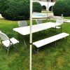 Los bancos plegables son una opción práctica para crear una gran cantidad de asientos con costos y esfuerzo mínimos. El mecanismo simple asegura la estabilidad y seguridad del banco plegable de plástico en cualquier entorno. El color blanco se adapta perfectamente a jardines, áreas exteriores de restaurantes, pero también a interiores.